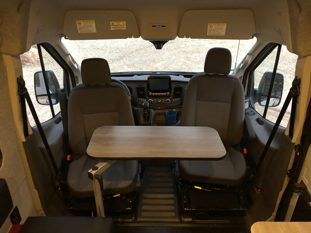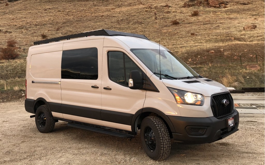 2021 Ford Transit MR 250 148” WB, AWD, Avalanche grey, Ecoboost, swivel seats, dual batteries, power sliding side door, extended range fuel tank, see window sticker for all options.