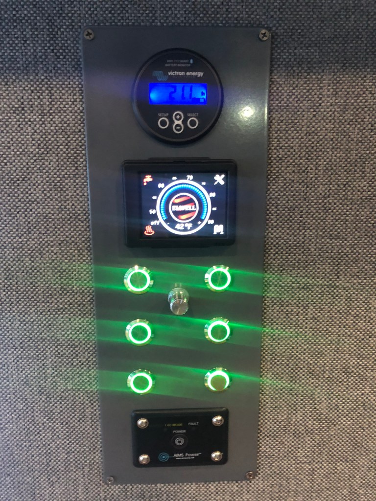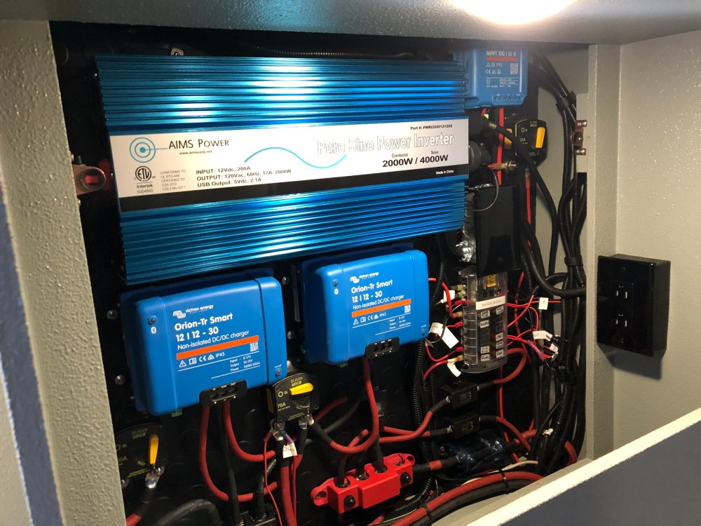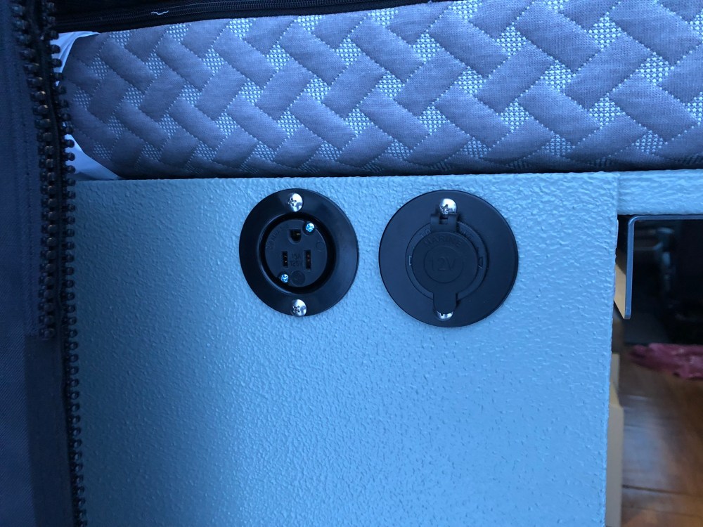 USB/DC cig plug @ 5 locations, including DC plug, and 110v power in upper cabinet with roof access. For installation of things like WIFI boosters, weather station, etc.