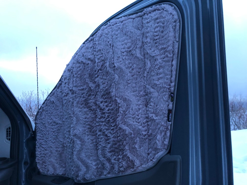Stelletek magnetic shades for cab front/door windows, grey polartech fleece