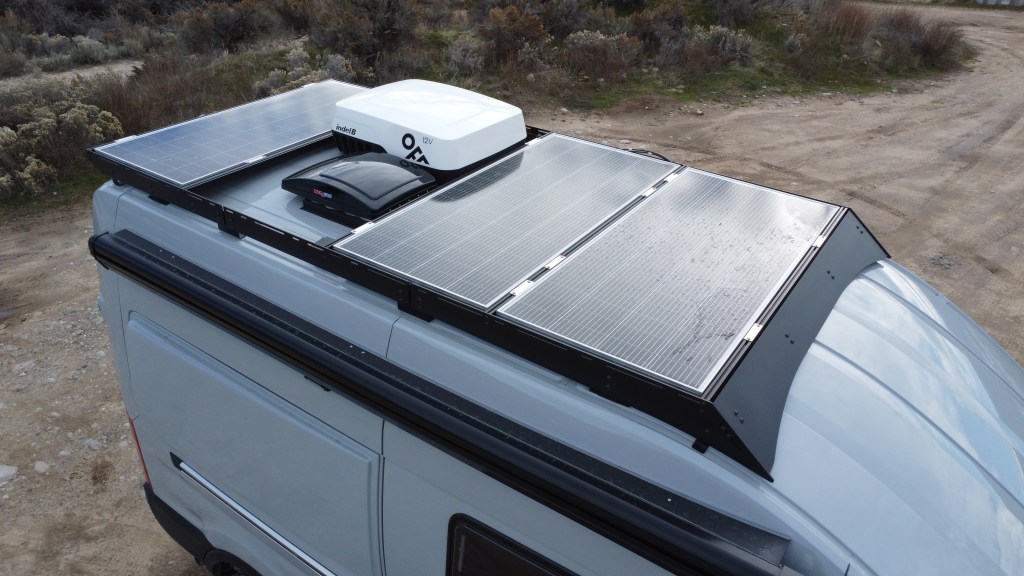 Power is supplied by a 600ah battery bank with space to upgrade to 900ah. No matter the bank size you will likely be running mostly off the 600 watt solar array integrated into the aerodynamic roof rack. There is also a roof access port to allow the installation of Starlink for those that want to maintain access to friends and work.