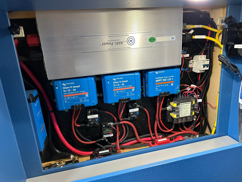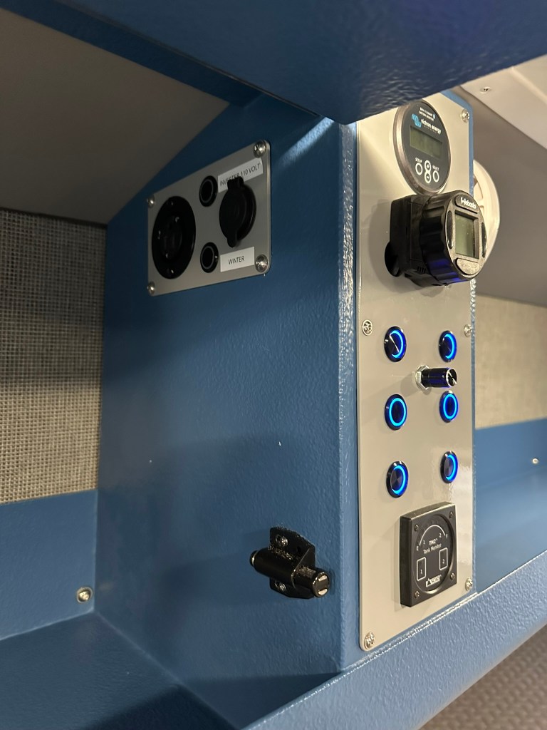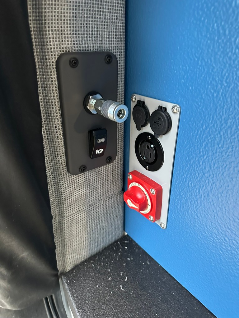 USB/DC cig plug @ 7 locations, including cig plug, and 110v power in upper cabinet with roof access. For installation of things like Starlink, WIFI boosters, weather station, etc.