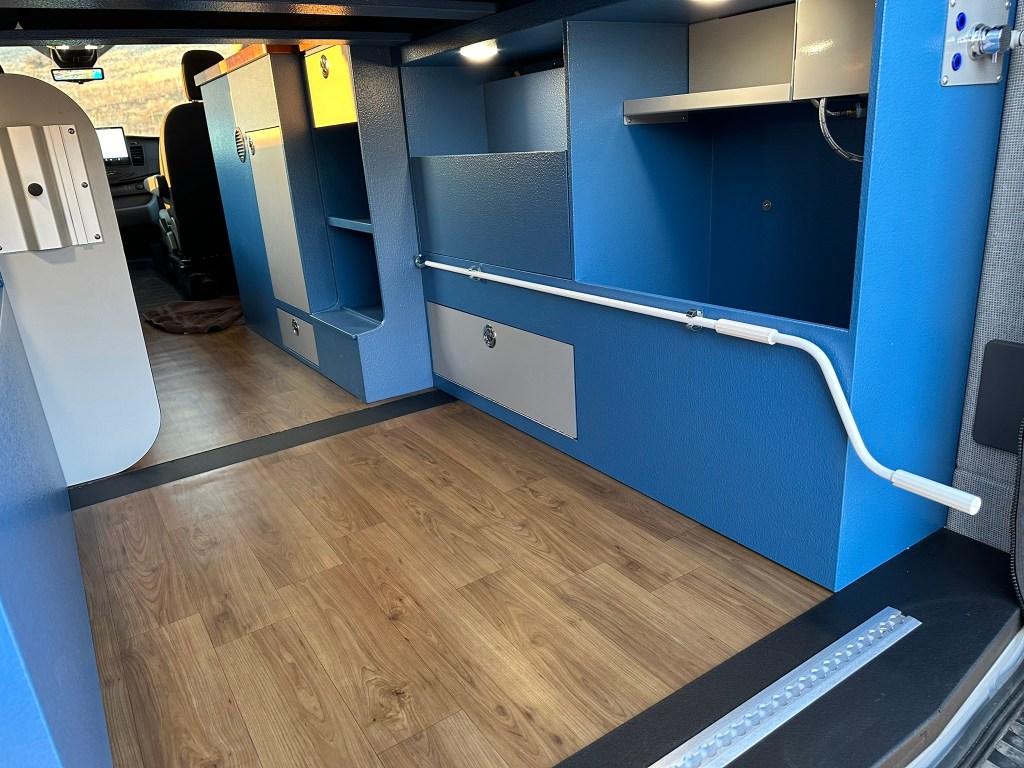 Custom Interior Cabinets- Featuring a tough waterproof epoxy coating in Toyota Cavalry Blue
