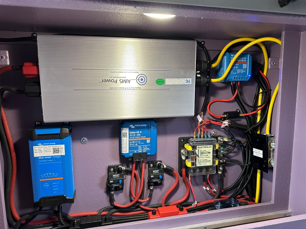 Electrical: Capacities: 300ah storage, 200w solar, 50 amp engine charging, 30 amp AC Charging, 2500w AC