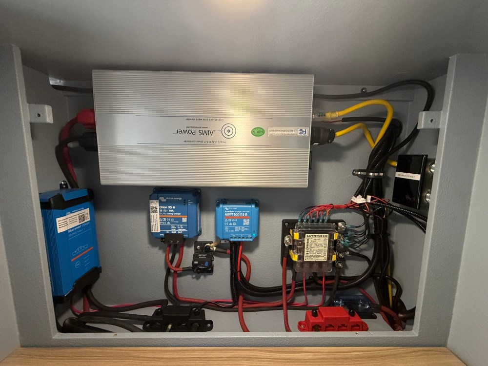 Electrical: Capacities: 300ah storage, 200w solar, 50 amp engine charging, 30 amp AC Charging, 2500w AC inverter