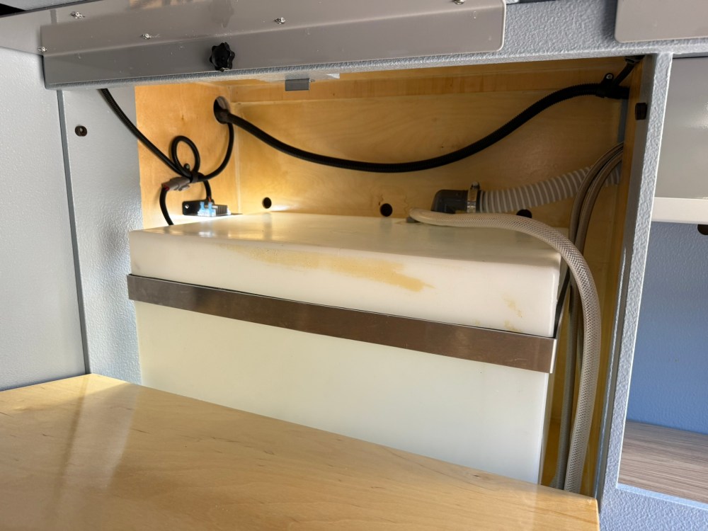 Fresh tank 21 gallon interior mount, rear door area fill